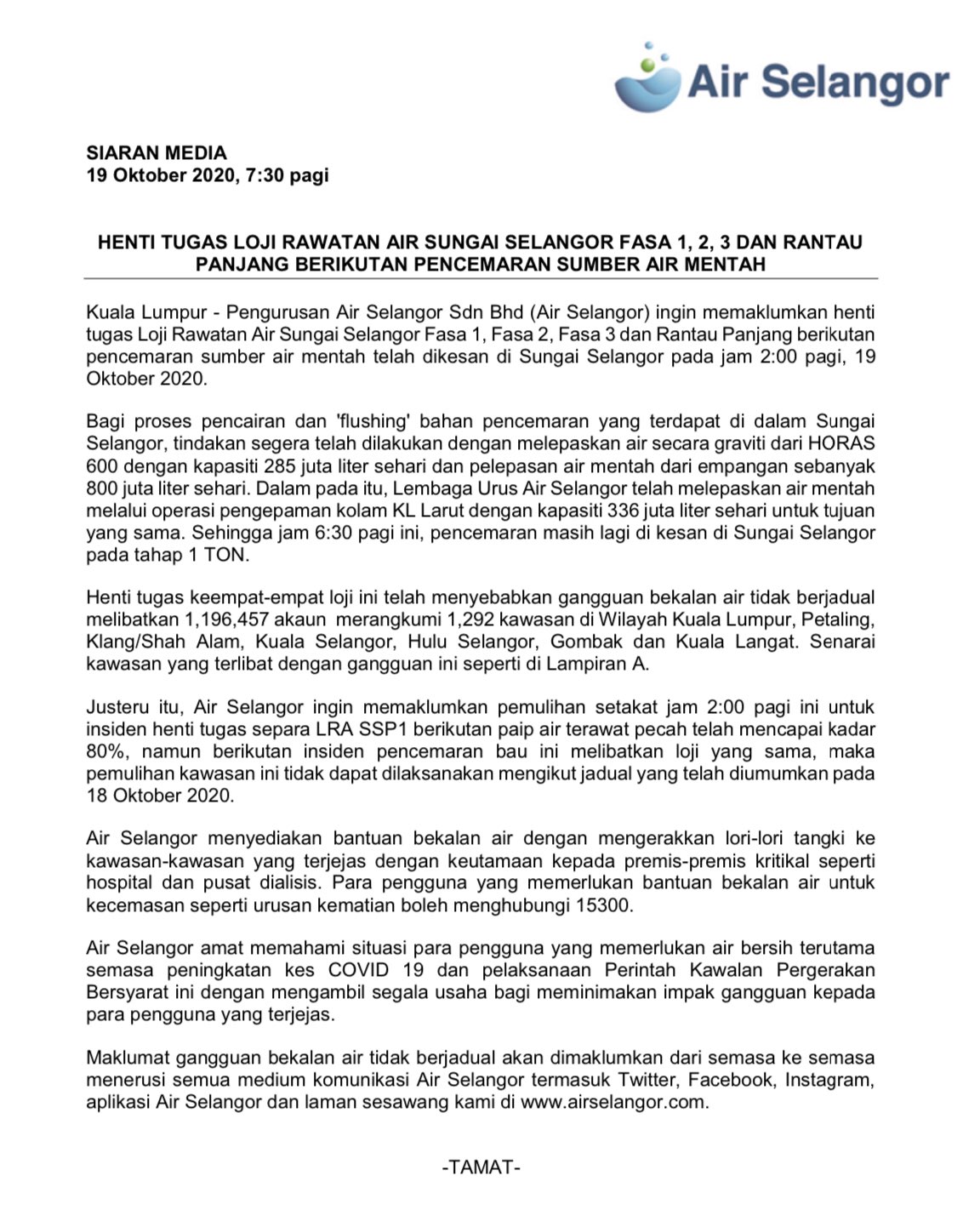 Astro Radio News Air Selangor Says Four Of Its Treatment Plants That Had To Temporarily Shut Down Due To Odour Pollution Yesterday Are Now Back In Operation The Shutdown Led To